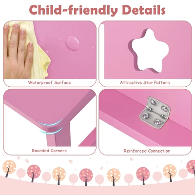 - Wide & Smooth Desktop: The wooden children’s desk features a spacious desktop that offers kids enough space for a variety of activities. They are able to read, write, eat, do crafts or play games. Besides, the burr free tabletop is friendly to little ones.