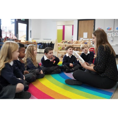 - Fun Learning – Institutional quality kids rug designed to teach children while sitting at home playrooms, daycares or school classrooms