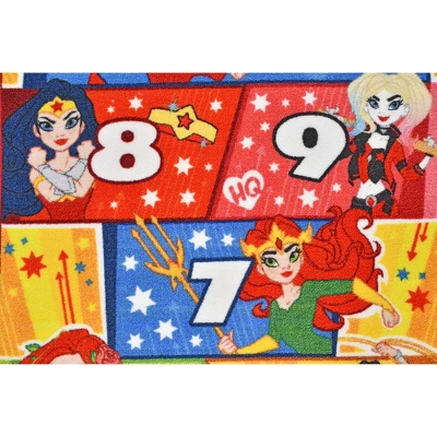 - Immersive Design: Your Kids Will Hop Right In With Their Favorite Justice League Superhero Girls. Rug Includes Wonder Woman, Supergirl, Harley Quinn, Batwoman, Catwoman, Poison Ivy, And Mera.
