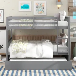 Full Over Full Bunk Bed With Trundle Bed And Ladder-ModernLuxe