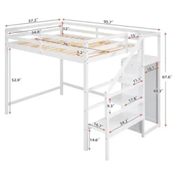 Full Size Loft Bed With Staircase And Safety Guardrails Gray/White-ModernLuxe