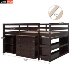 Low Study Full Loft Bed With Cabinets, Shelving And Rolling Portable Desk – ModernLuxe