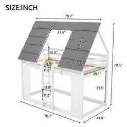 Twin Over Twin Wood House Bunk Bed With Roof And Built-in Ladder, White-ModernLuxe